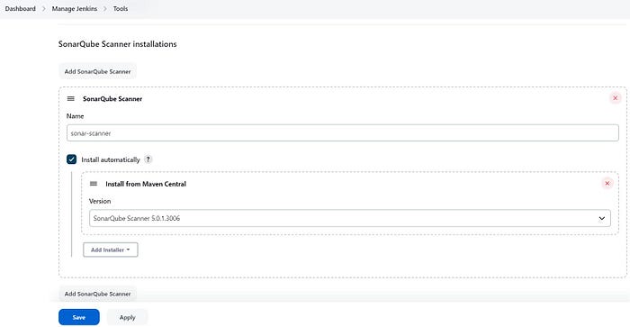 Now, goto Dashboard → Manage Jenkins → Tools →
