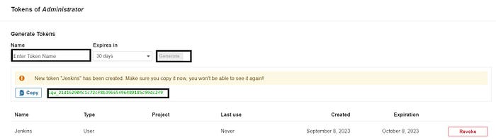 Grab the Public IP Address of your EC2 Instance, Sonarqube works on Port 9000, sp <Public IP>:9000. Goto your Sonarqube Server. Click on Administration → Security → Users → Click on Tokens and Update Token → Give it a name → and click on Generate Token